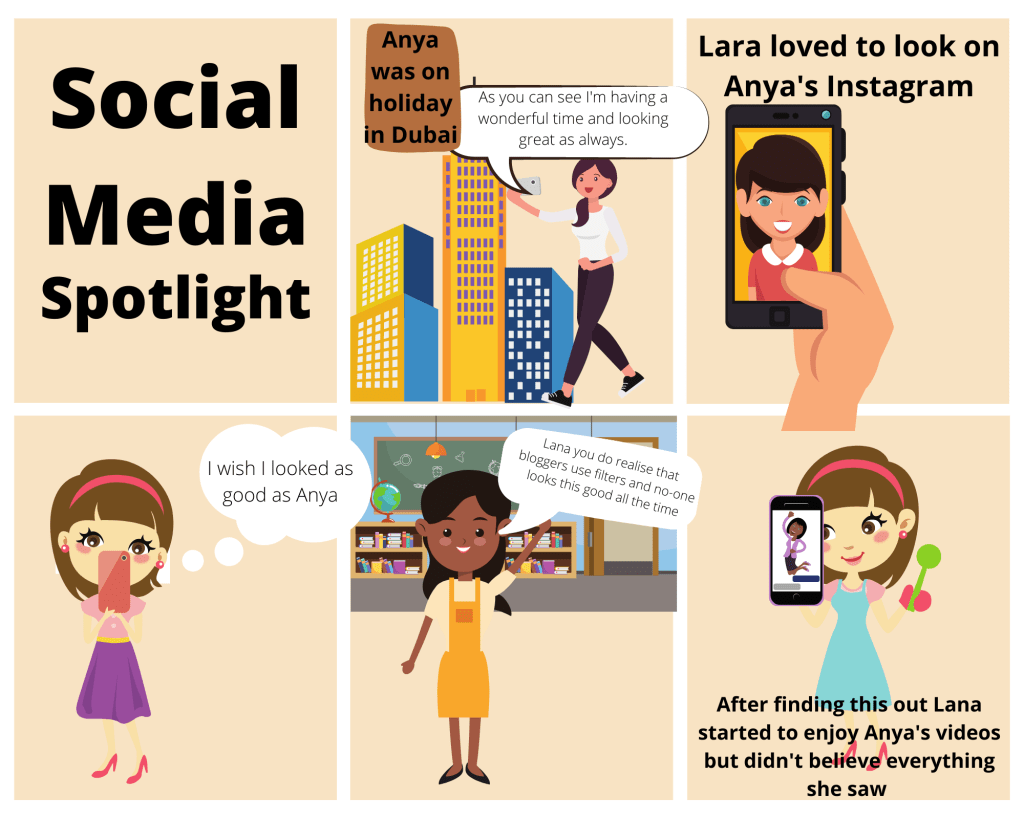 This week we continued with our Body Talk project that has been funded by Comic Relief. This week we decided to “Change the Script.” Using this we can challenge the process of making appearance comparisons. We all look at images on social media and are guilty of comparing ourselves to people we see online and in magazines and can become trapped in a downward spiral of not feeling “good enough.” Thank you to everyone that has helped to create our storyboard comics.